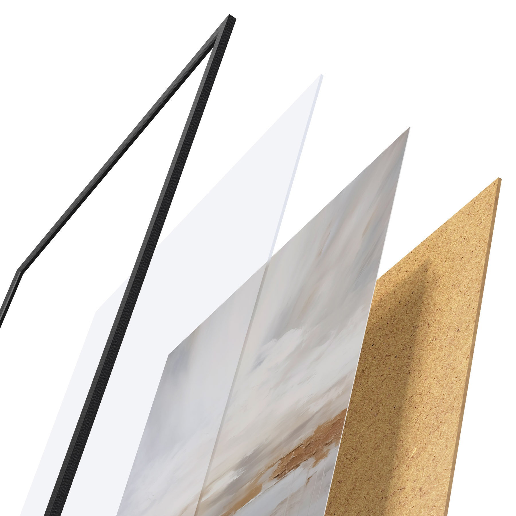 Plakát se skládá z rámu, plexiskla, tištěného obrazu a dřevotřískového podkladu. Díky úchytům na zadní straně lze plakát ihned zavěsit na zeď.