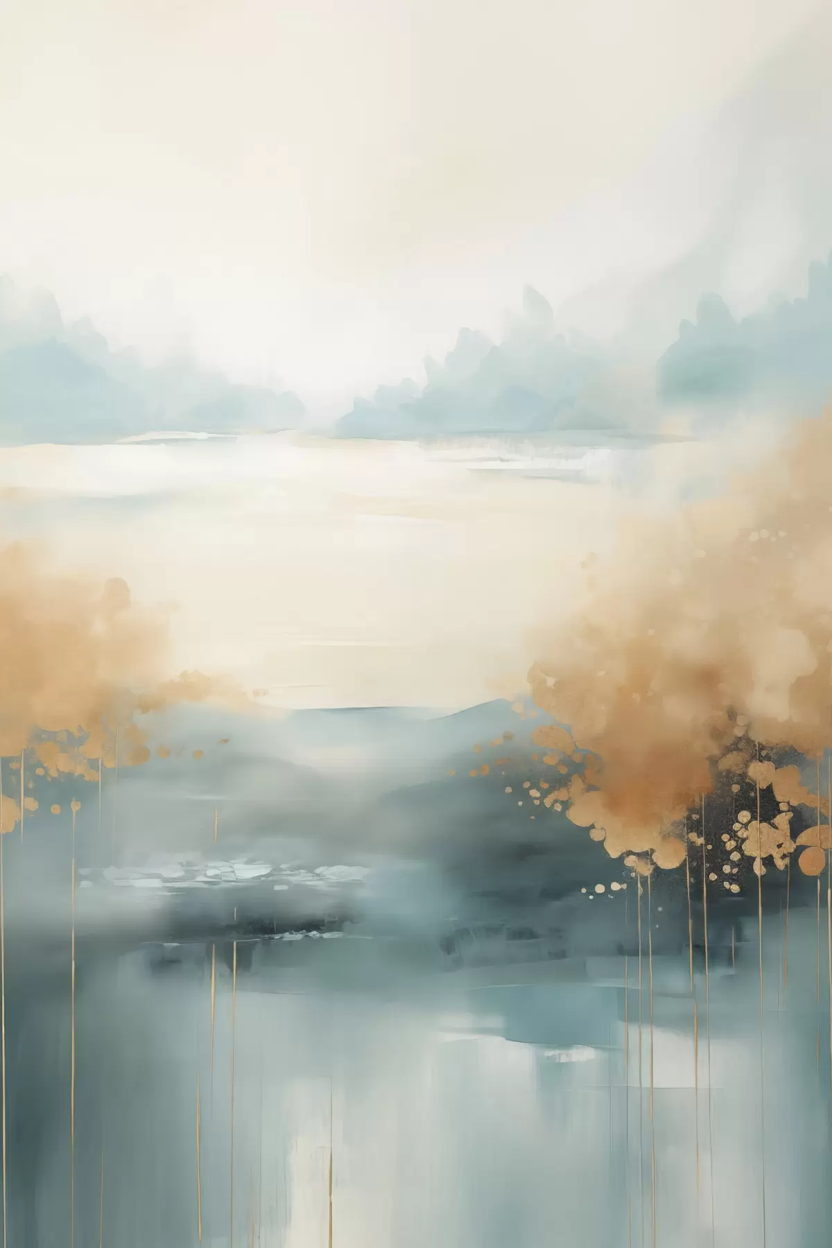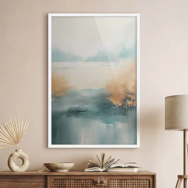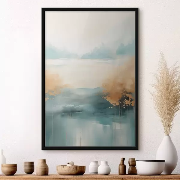 Úvodní stránkaKatalog posterůPostery abstrakcePoster Abstraktní krajina s horami a jezerem v modrozelené a žluté barvě s texturou, jemné tahy štětcem, minimalistické umělecké dílo Č. f46704