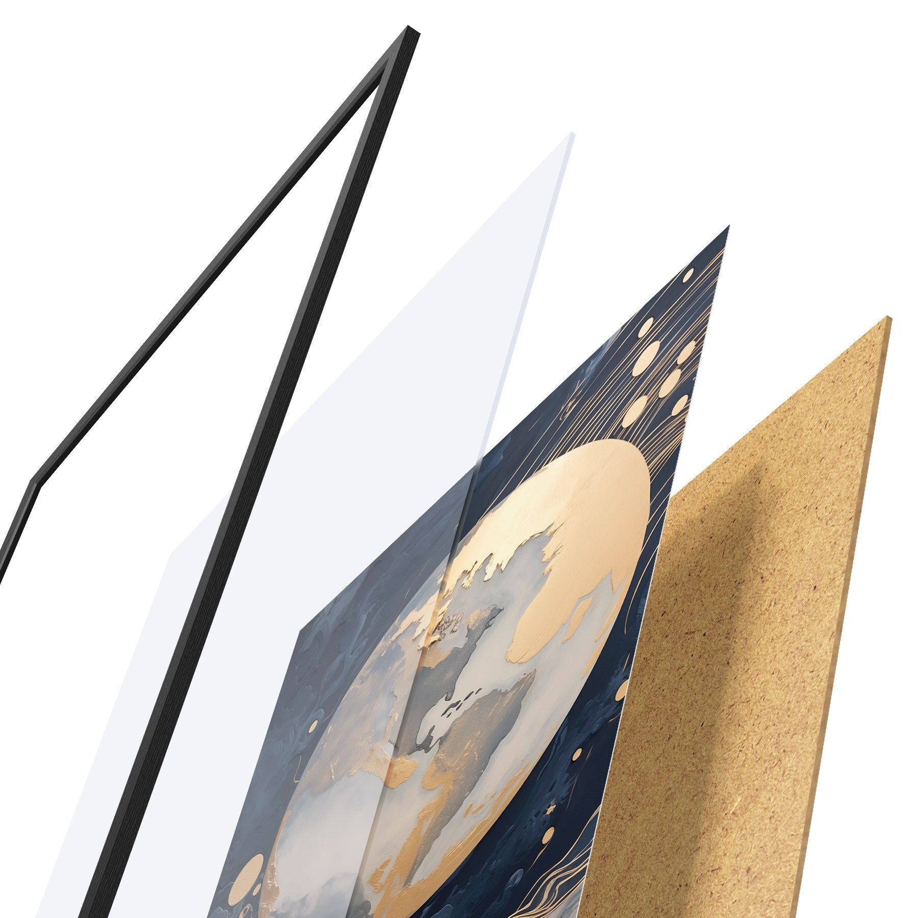 Plakát se skládá z rámu, plexiskla, tištěného obrazu a dřevotřískového podkladu. Díky úchytům na zadní straně lze plakát ihned zavěsit na zeď.