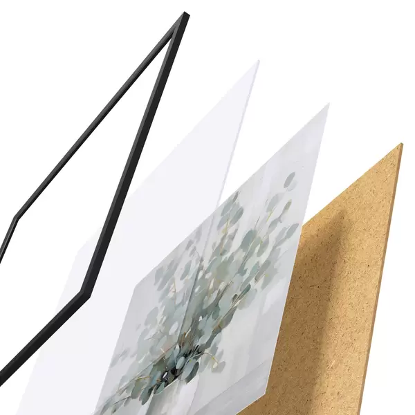 Plakát se skládá z rámu, plexiskla, tištěného obrazu a dřevotřískového podkladu. Díky úchytům na zadní straně lze plakát ihned zavěsit na zeď.