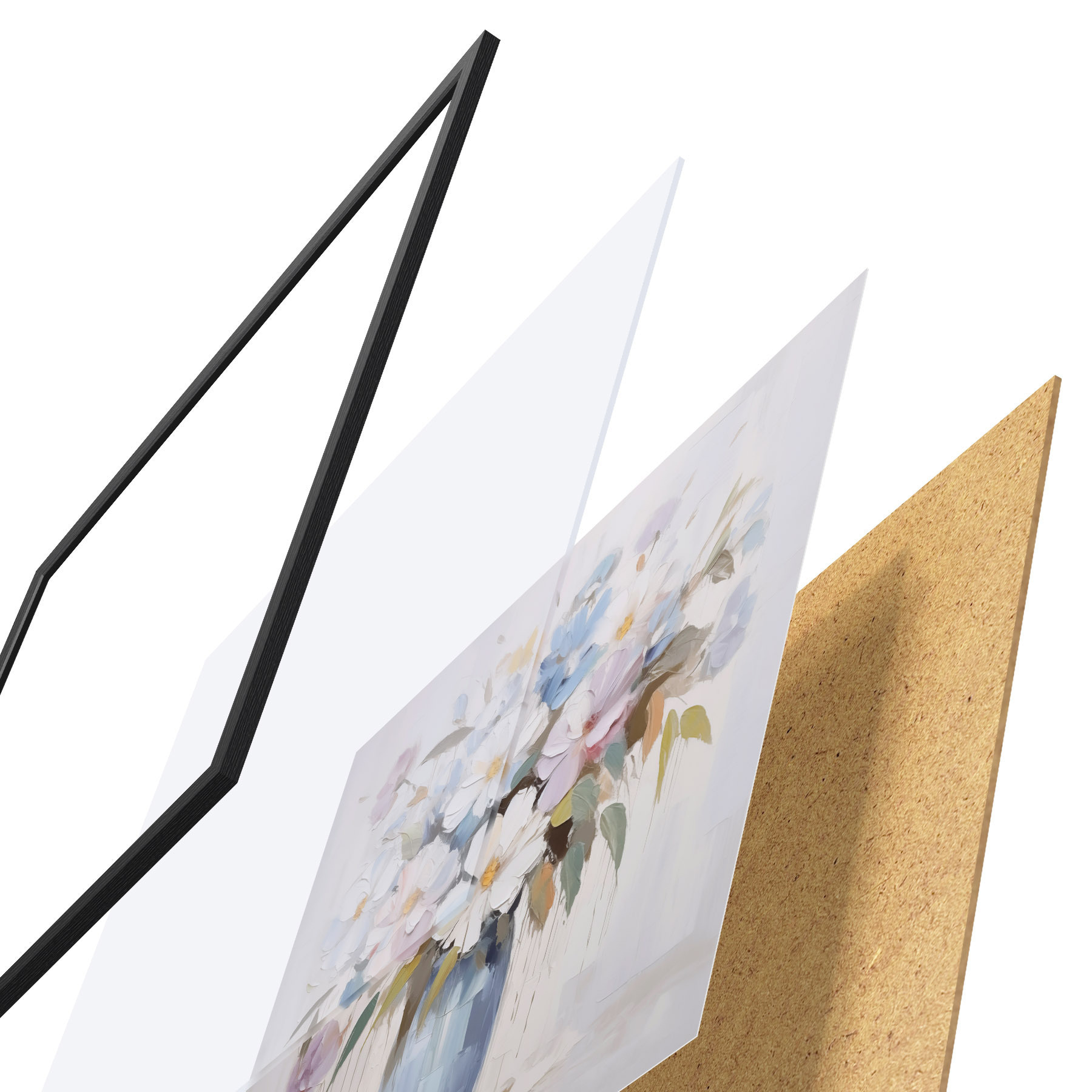 Plakát se skládá z rámu, plexiskla, tištěného obrazu a dřevotřískového podkladu. Díky úchytům na zadní straně lze plakát ihned zavěsit na zeď.
