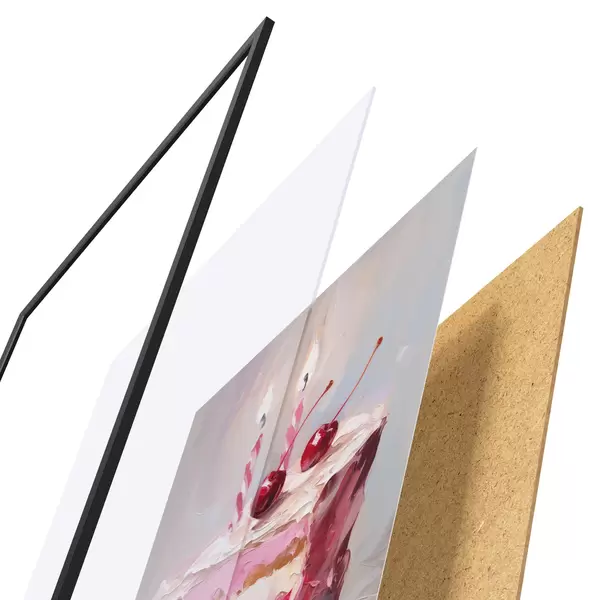 Plakát se skládá z rámu, plexiskla, tištěného obrazu a dřevotřískového podkladu. Díky úchytům na zadní straně lze plakát ihned zavěsit na zeď.