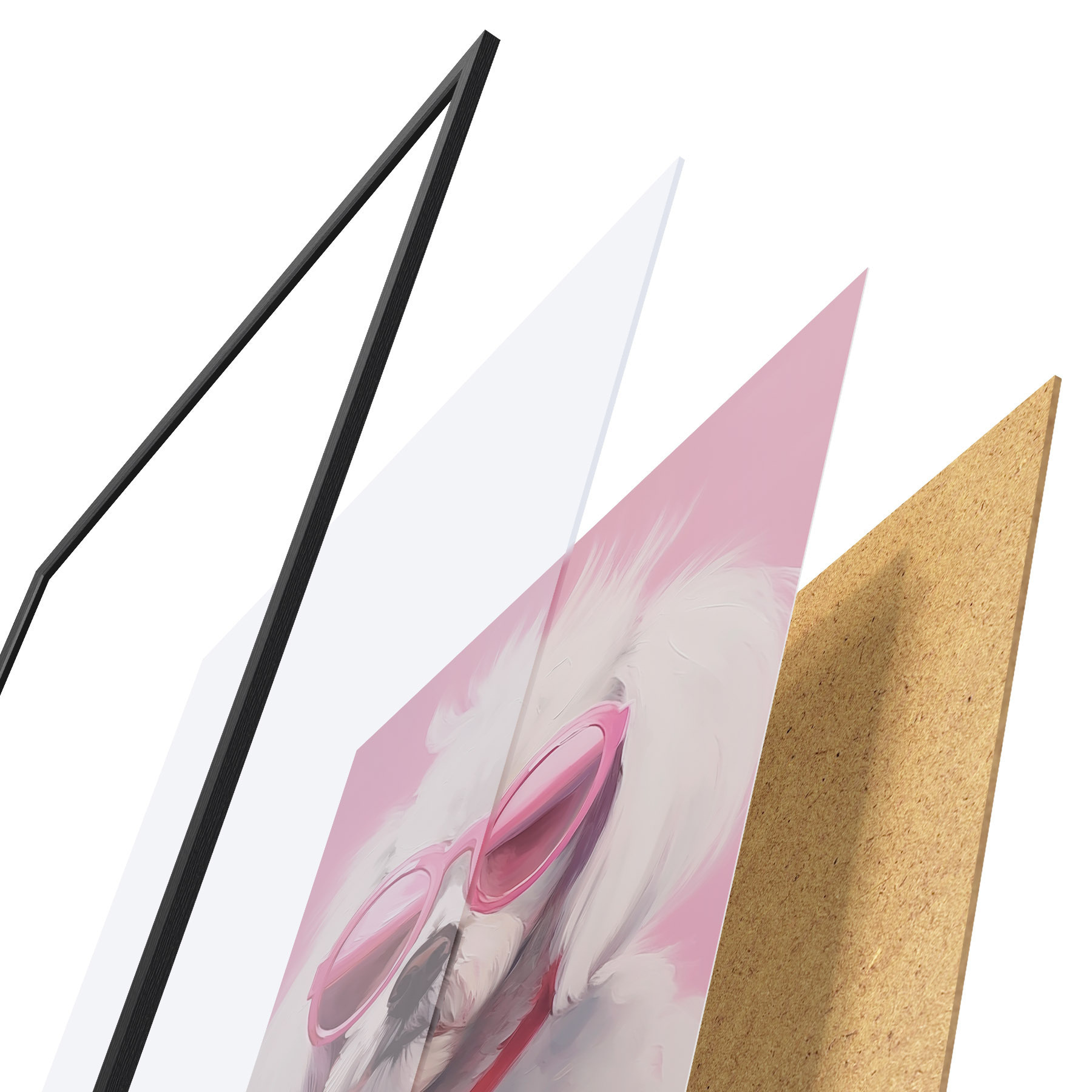 Plakát se skládá z rámu, plexiskla, tištěného obrazu a dřevotřískového podkladu. Díky úchytům na zadní straně lze plakát ihned zavěsit na zeď.