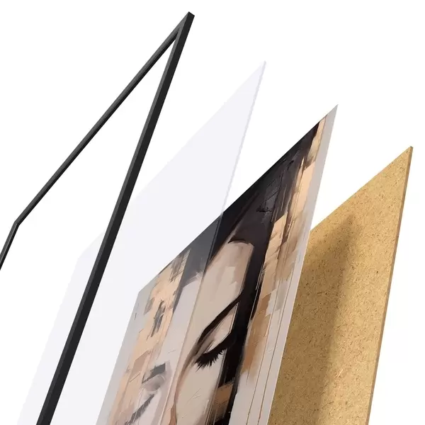 Plakát se skládá z rámu, plexiskla, tištěného obrazu a dřevotřískového podkladu. Díky úchytům na zadní straně lze plakát ihned zavěsit na zeď.