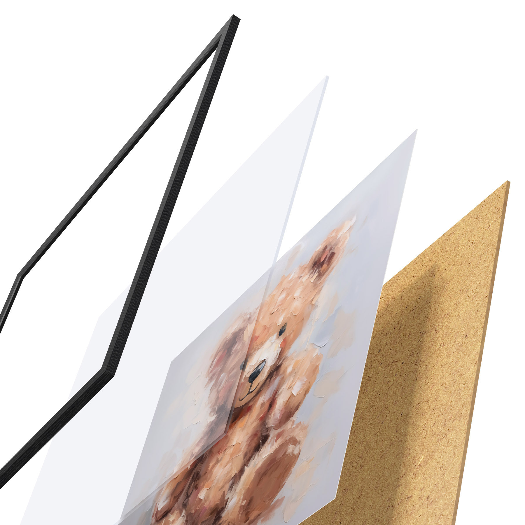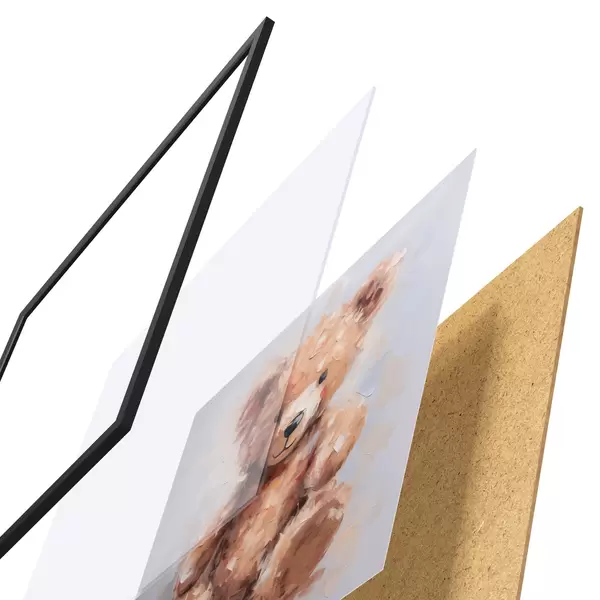 Plakát se skládá z rámu, plexiskla, tištěného obrazu a dřevotřískového podkladu. Díky úchytům na zadní straně lze plakát ihned zavěsit na zeď.