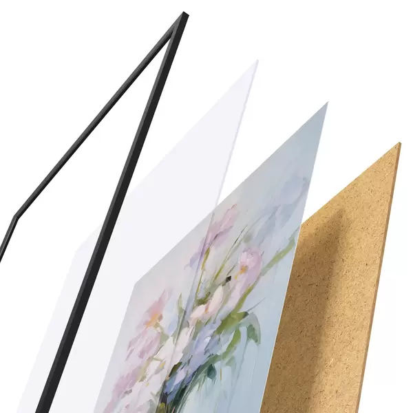 Plakát se skládá z rámu, plexiskla, tištěného obrazu a dřevotřískového podkladu. Díky úchytům na zadní straně lze plakát ihned zavěsit na zeď.