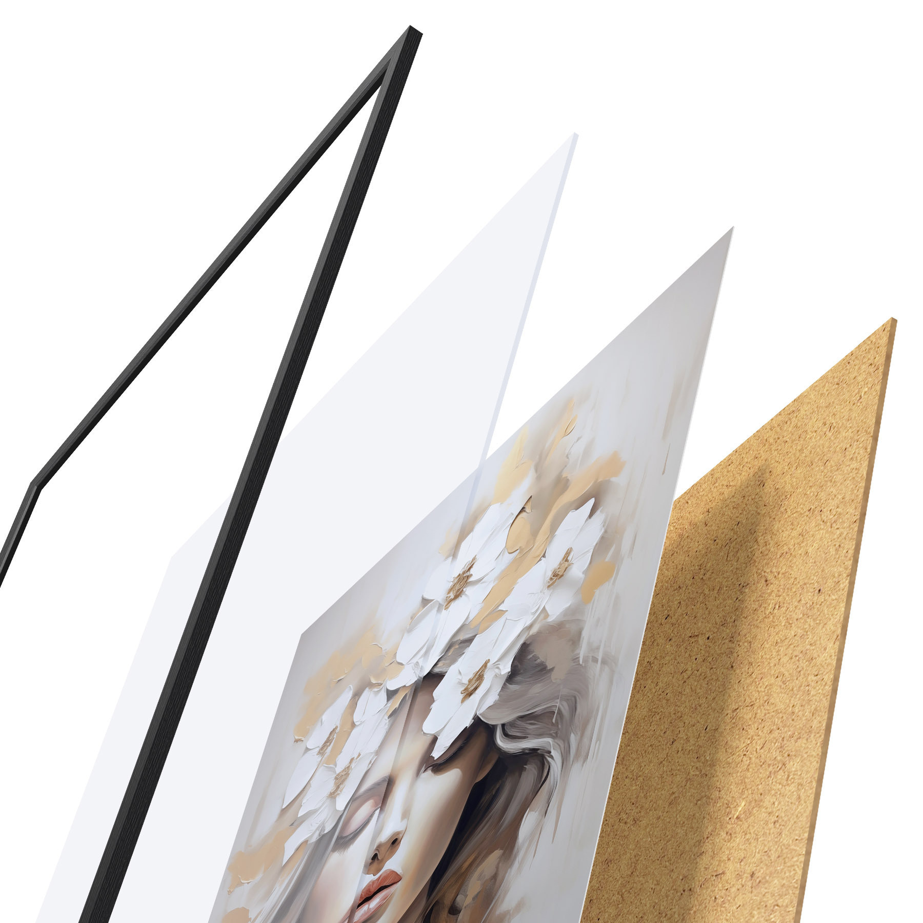 Plakát se skládá z rámu, plexiskla, tištěného obrazu a dřevotřískového podkladu. Díky úchytům na zadní straně lze plakát ihned zavěsit na zeď.
