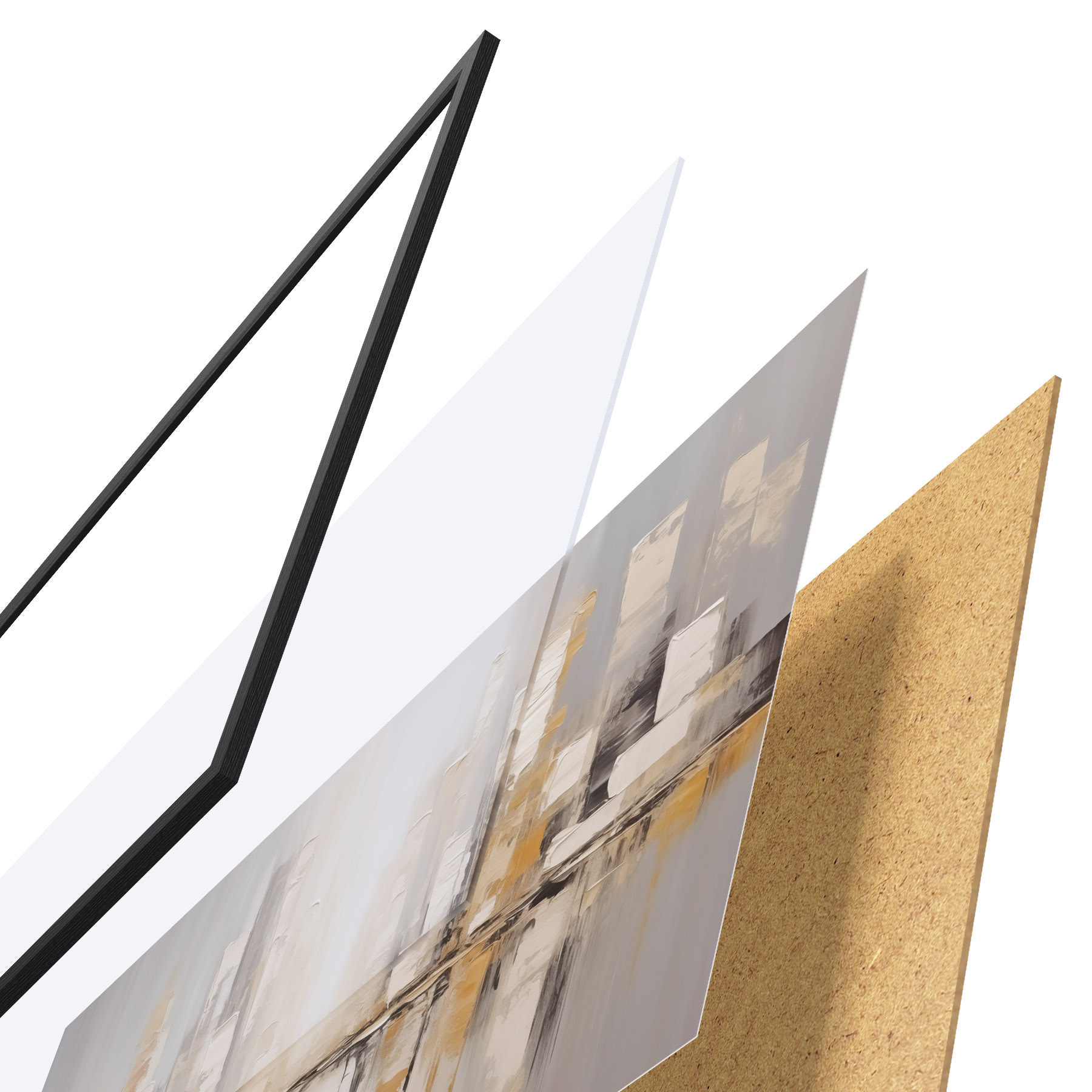 Plakát se skládá z rámu, plexiskla, tištěného obrazu a dřevotřískového podkladu. Díky úchytům na zadní straně lze plakát ihned zavěsit na zeď.