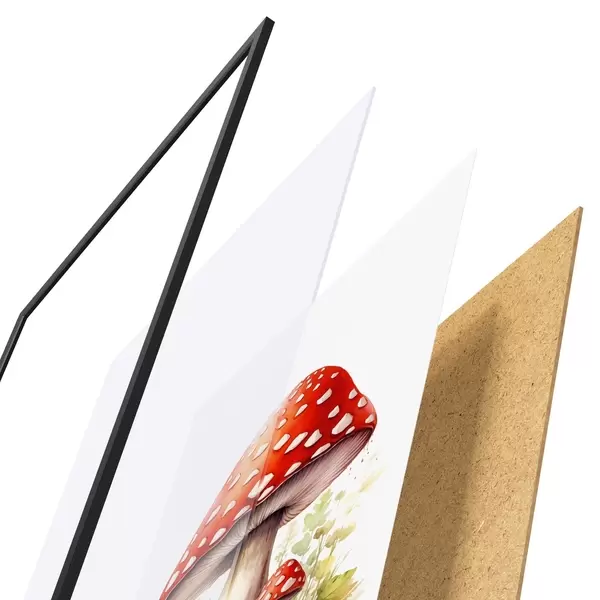 Plakát se skládá z rámu, plexiskla, tištěného obrazu a dřevotřískového podkladu. Díky úchytům na zadní straně lze plakát ihned zavěsit na zeď.