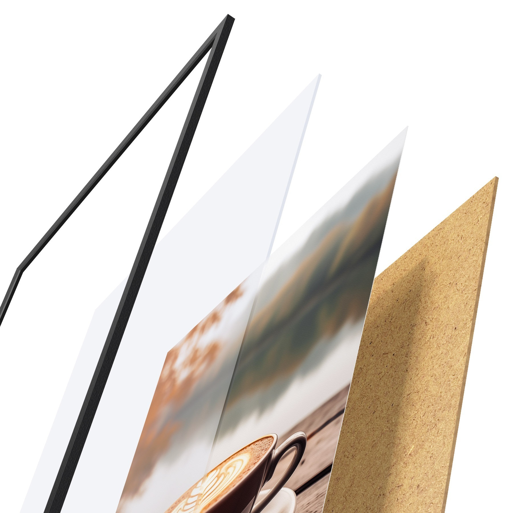 Plakát se skládá z rámu, plexiskla, tištěného obrazu a dřevotřískového podkladu. Díky úchytům na zadní straně lze plakát ihned zavěsit na zeď.