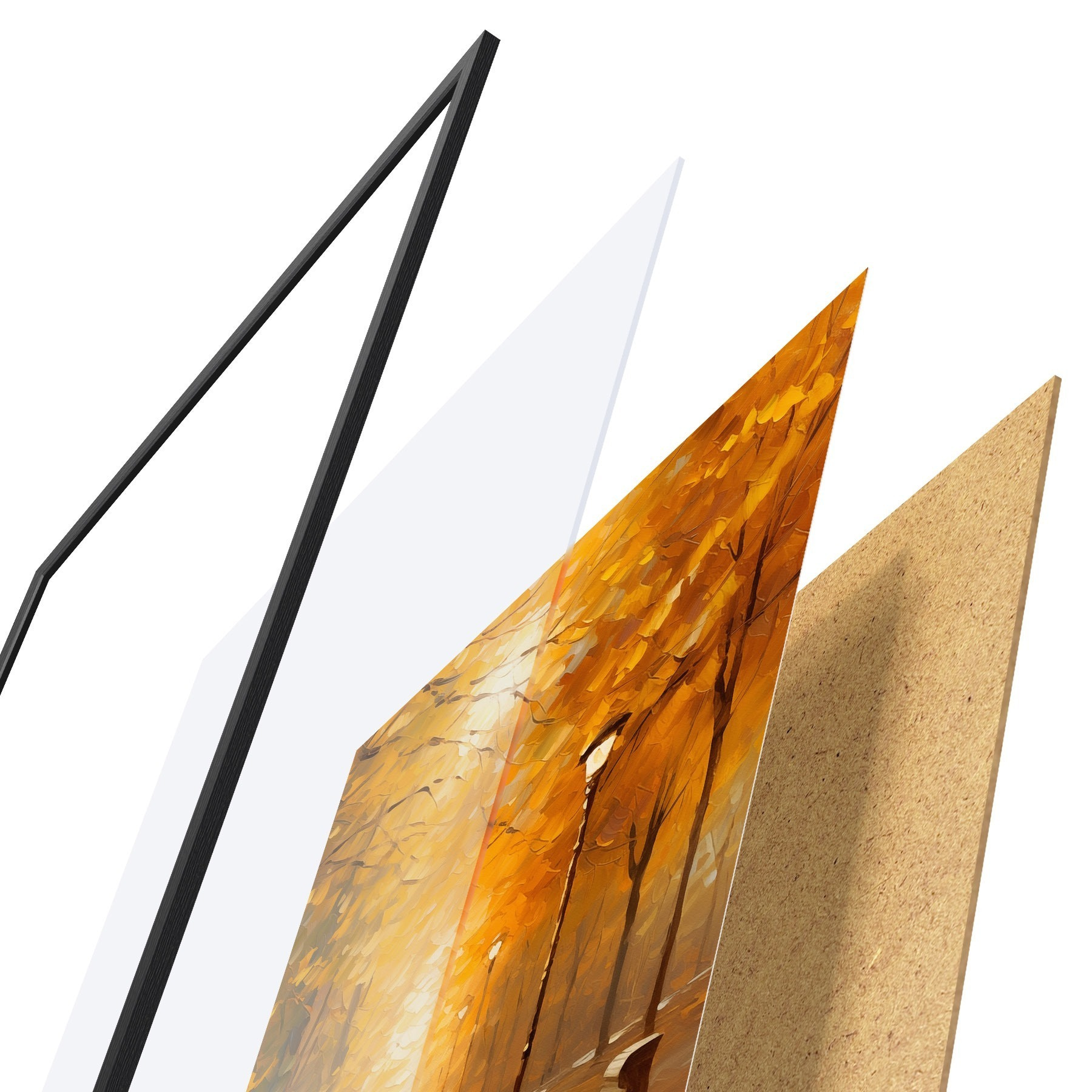 Plakát se skládá z rámu, plexiskla, tištěného obrazu a dřevotřískového podkladu. Díky úchytům na zadní straně lze plakát ihned zavěsit na zeď.