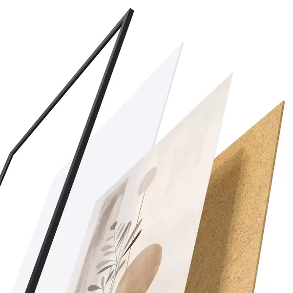 Plakát se skládá z rámu, plexiskla, tištěného obrazu a dřevotřískového podkladu. Díky úchytům na zadní straně lze plakát ihned zavěsit na zeď.