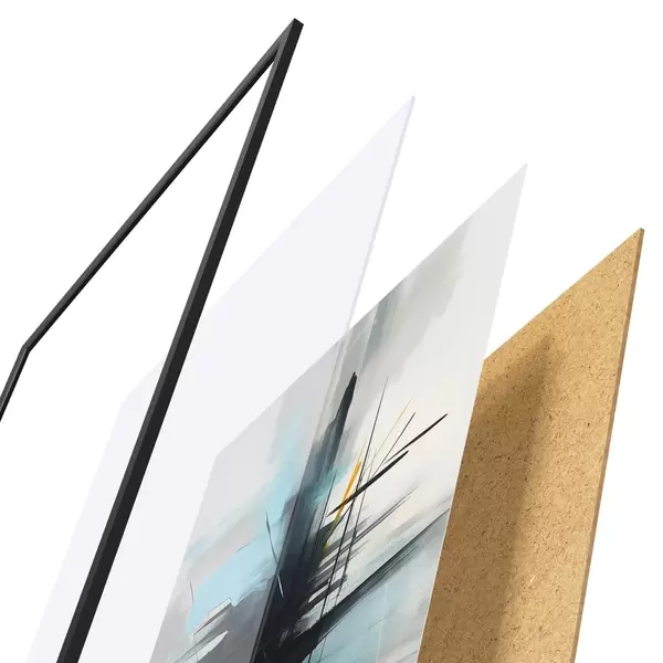 Plakát se skládá z rámu, plexiskla, tištěného obrazu a dřevotřískového podkladu. Díky úchytům na zadní straně lze plakát ihned zavěsit na zeď.