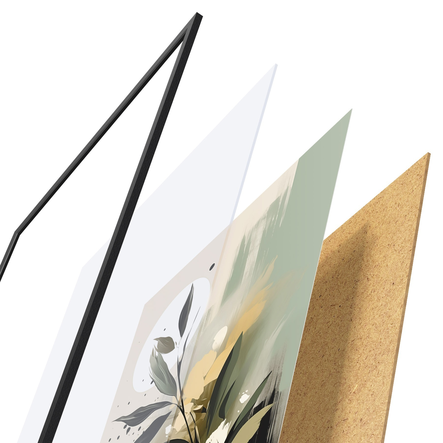 Plakát se skládá z rámu, plexiskla, tištěného obrazu a dřevotřískového podkladu. Díky úchytům na zadní straně lze plakát ihned zavěsit na zeď.