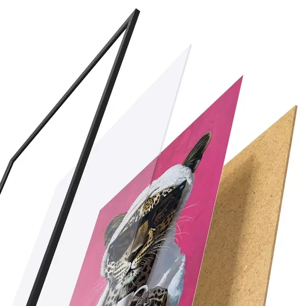 Plakát se skládá z rámu, plexiskla, tištěného obrazu a dřevotřískového podkladu. Díky úchytům na zadní straně lze plakát ihned zavěsit na zeď.