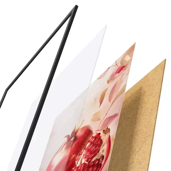 Plakát se skládá z rámu, plexiskla, tištěného obrazu a dřevotřískového podkladu. Díky úchytům na zadní straně lze plakát ihned zavěsit na zeď.