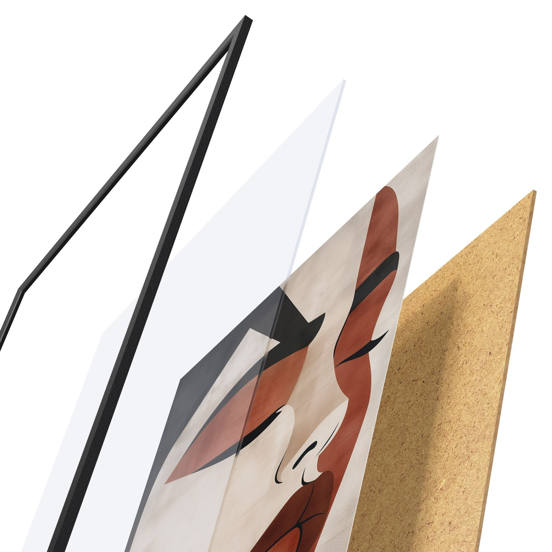 Plakát se skládá z rámu, plexiskla, tištěného obrazu a dřevotřískového podkladu. Díky úchytům na zadní straně lze plakát ihned zavěsit na zeď.