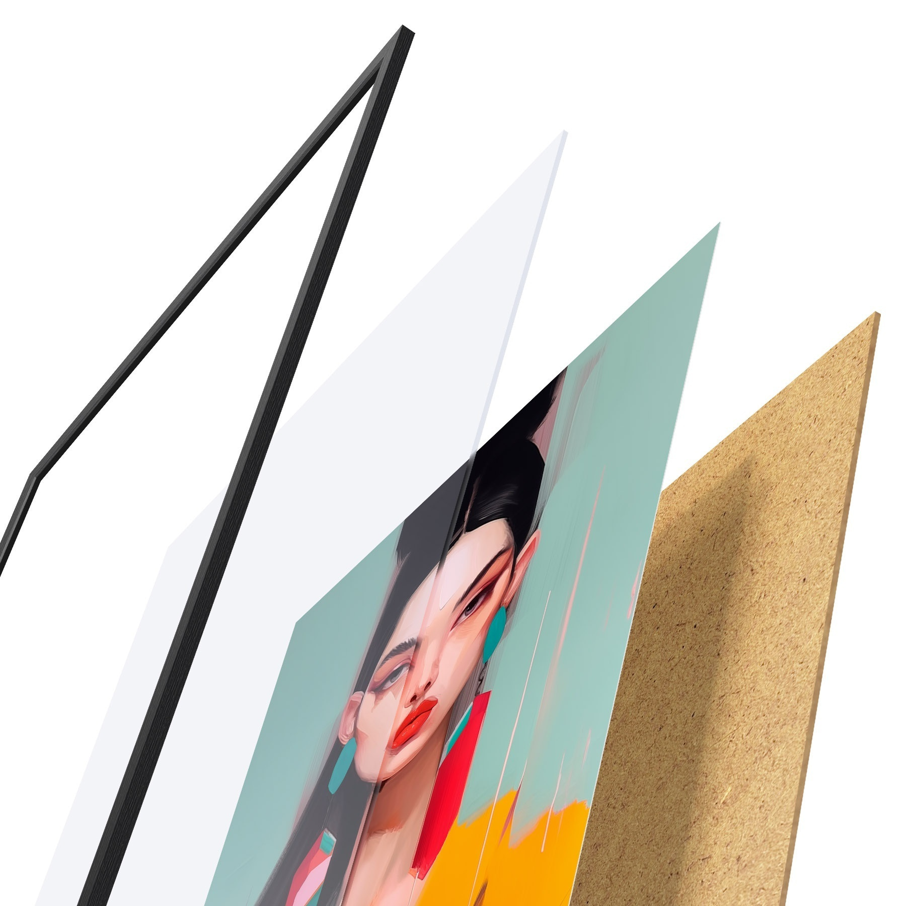 Plakát se skládá z rámu, plexiskla, tištěného obrazu a dřevotřískového podkladu. Díky úchytům na zadní straně lze plakát ihned zavěsit na zeď.