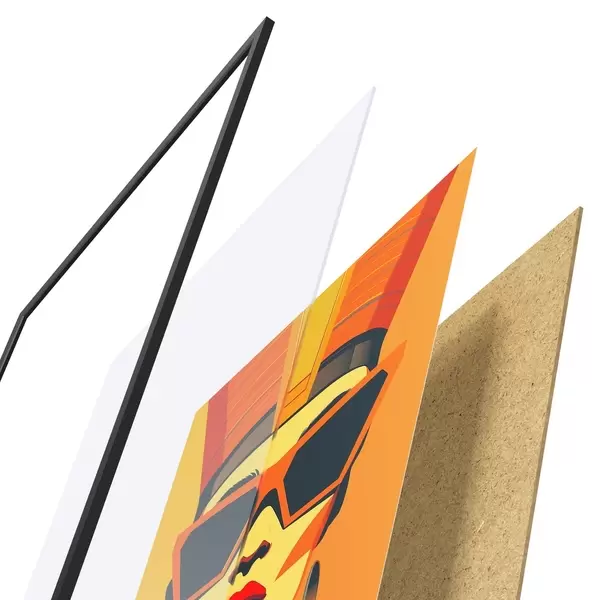 Plakát se skládá z rámu, plexiskla, tištěného obrazu a dřevotřískového podkladu. Díky úchytům na zadní straně lze plakát ihned zavěsit na zeď.