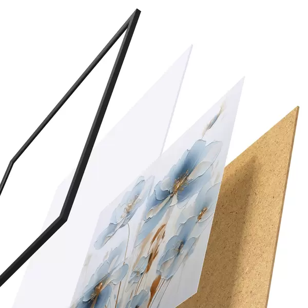 Plakát se skládá z rámu, plexiskla, tištěného obrazu a dřevotřískového podkladu. Díky úchytům na zadní straně lze plakát ihned zavěsit na zeď.