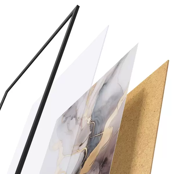 Plakát se skládá z rámu, plexiskla, tištěného obrazu a dřevotřískového podkladu. Díky úchytům na zadní straně lze plakát ihned zavěsit na zeď.