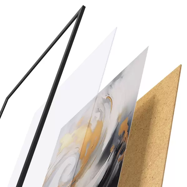 Plakát se skládá z rámu, plexiskla, tištěného obrazu a dřevotřískového podkladu. Díky úchytům na zadní straně lze plakát ihned zavěsit na zeď.