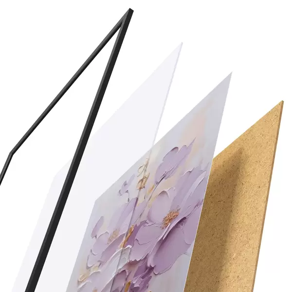 Plakát se skládá z rámu, plexiskla, tištěného obrazu a dřevotřískového podkladu. Díky úchytům na zadní straně lze plakát ihned zavěsit na zeď.