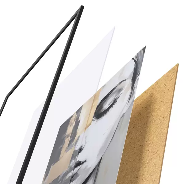 Plakát se skládá z rámu, plexiskla, tištěného obrazu a dřevotřískového podkladu. Díky úchytům na zadní straně lze plakát ihned zavěsit na zeď.