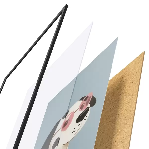 Plakát se skládá z rámu, plexiskla, tištěného obrazu a dřevotřískového podkladu. Díky úchytům na zadní straně lze plakát ihned zavěsit na zeď.