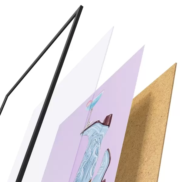 Plakát se skládá z rámu, plexiskla, tištěného obrazu a dřevotřískového podkladu. Díky úchytům na zadní straně lze plakát ihned zavěsit na zeď.