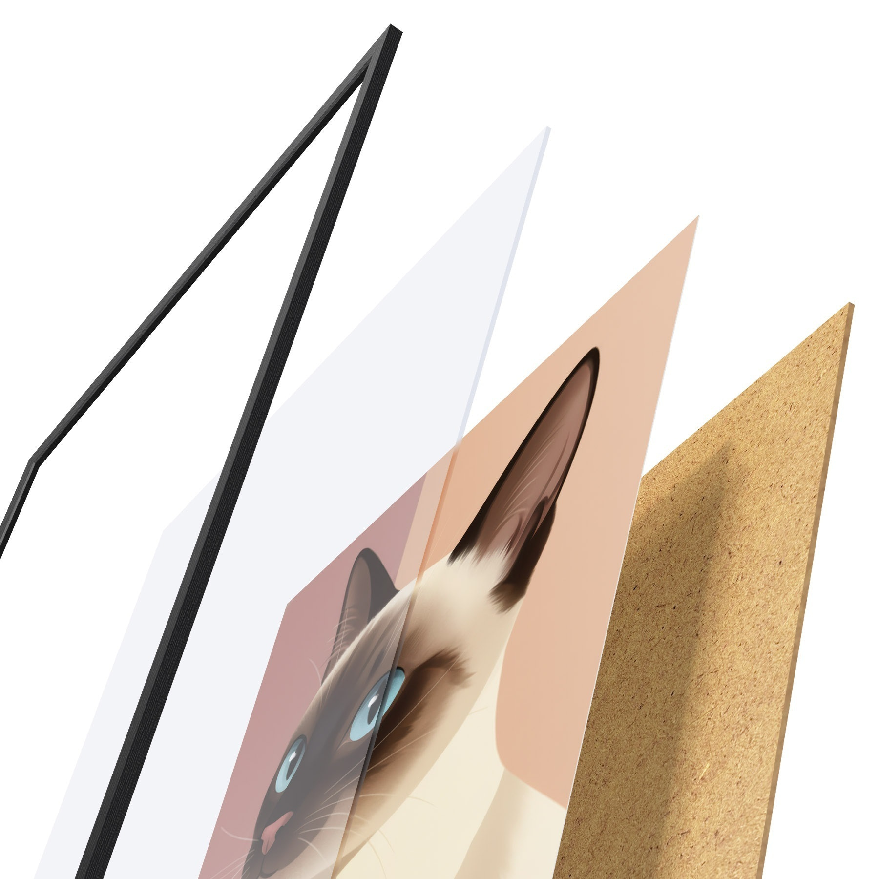 Plakát se skládá z rámu, plexiskla, tištěného obrazu a dřevotřískového podkladu. Díky úchytům na zadní straně lze plakát ihned zavěsit na zeď.