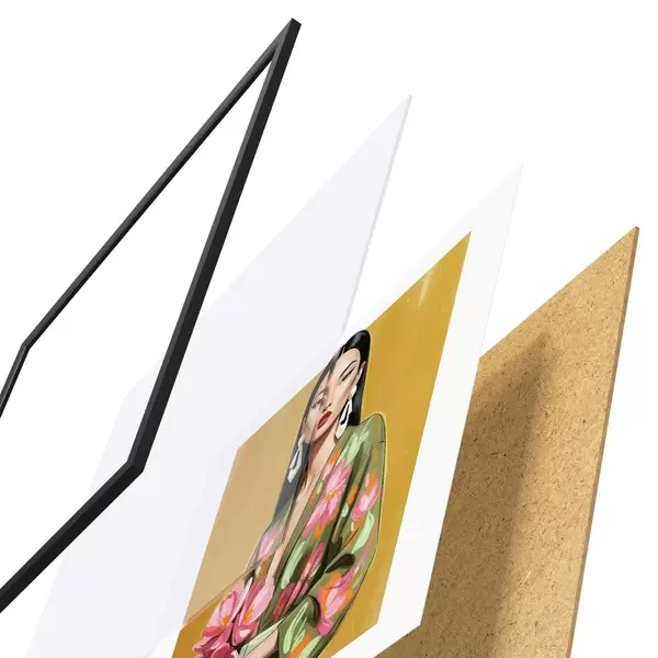 Plakát se skládá z rámu, plexiskla, tištěného obrazu a dřevotřískového podkladu. Díky úchytům na zadní straně lze plakát ihned zavěsit na zeď.