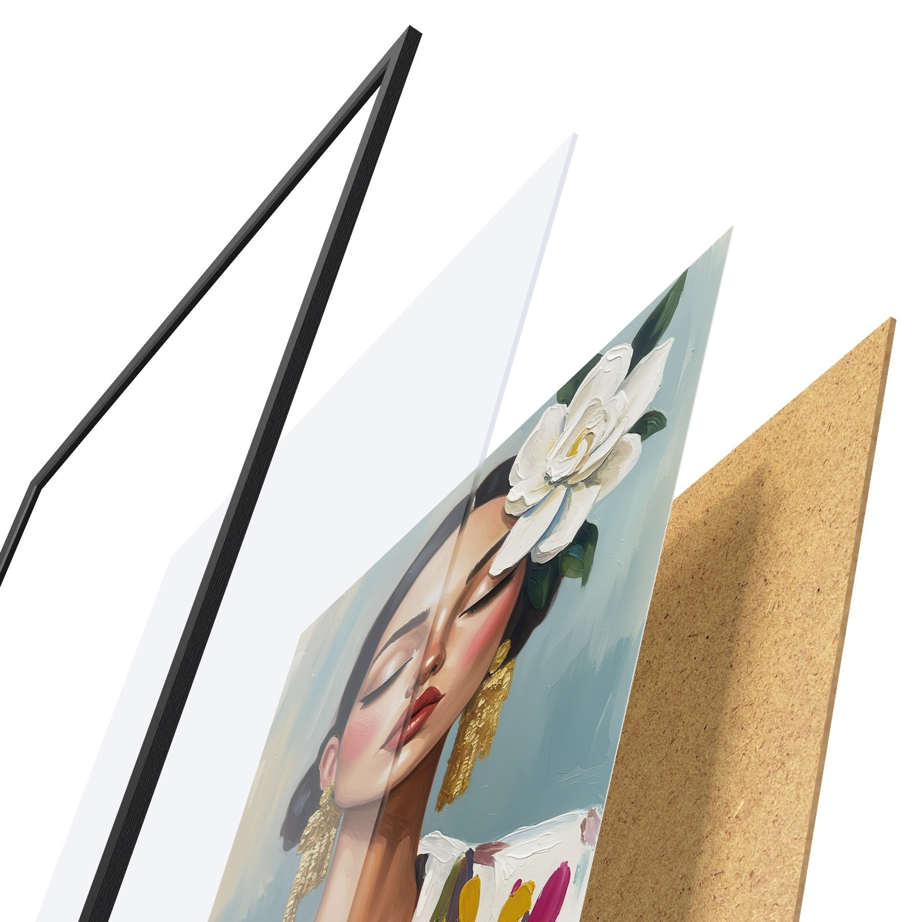 Plakát se skládá z rámu, plexiskla, tištěného obrazu a dřevotřískového podkladu. Díky úchytům na zadní straně lze plakát ihned zavěsit na zeď.