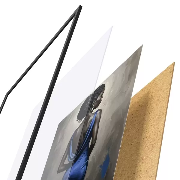 Plakát se skládá z rámu, plexiskla, tištěného obrazu a dřevotřískového podkladu. Díky úchytům na zadní straně lze plakát ihned zavěsit na zeď.