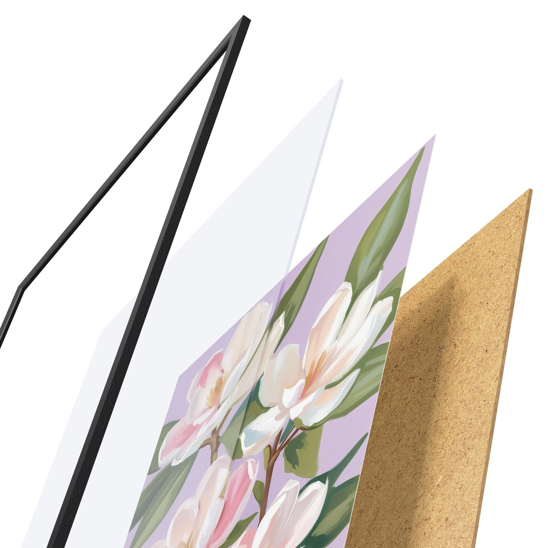 Plakát se skládá z rámu, plexiskla, tištěného obrazu a dřevotřískového podkladu. Díky úchytům na zadní straně lze plakát ihned zavěsit na zeď.