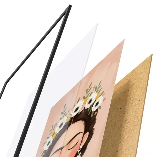 Plakát se skládá z rámu, plexiskla, tištěného obrazu a dřevotřískového podkladu. Díky úchytům na zadní straně lze plakát ihned zavěsit na zeď.