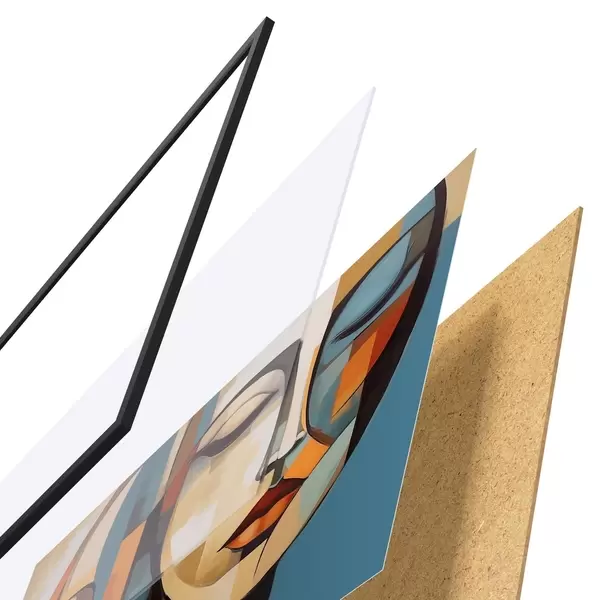Plakát se skládá z rámu, plexiskla, tištěného obrazu a dřevotřískového podkladu. Díky úchytům na zadní straně lze plakát ihned zavěsit na zeď.