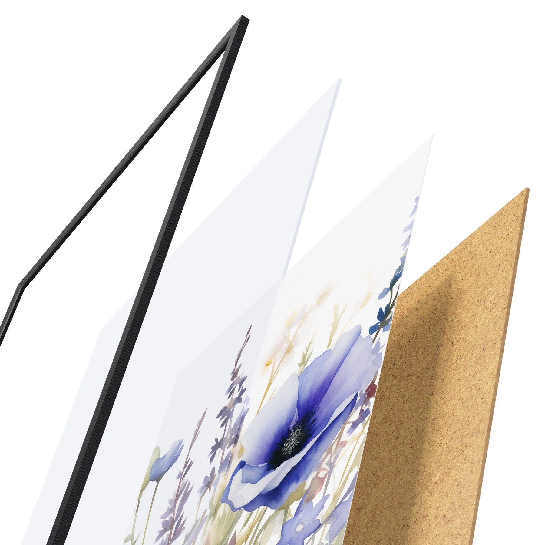 Plakát se skládá z rámu, plexiskla, tištěného obrazu a dřevotřískového podkladu. Díky úchytům na zadní straně lze plakát ihned zavěsit na zeď.