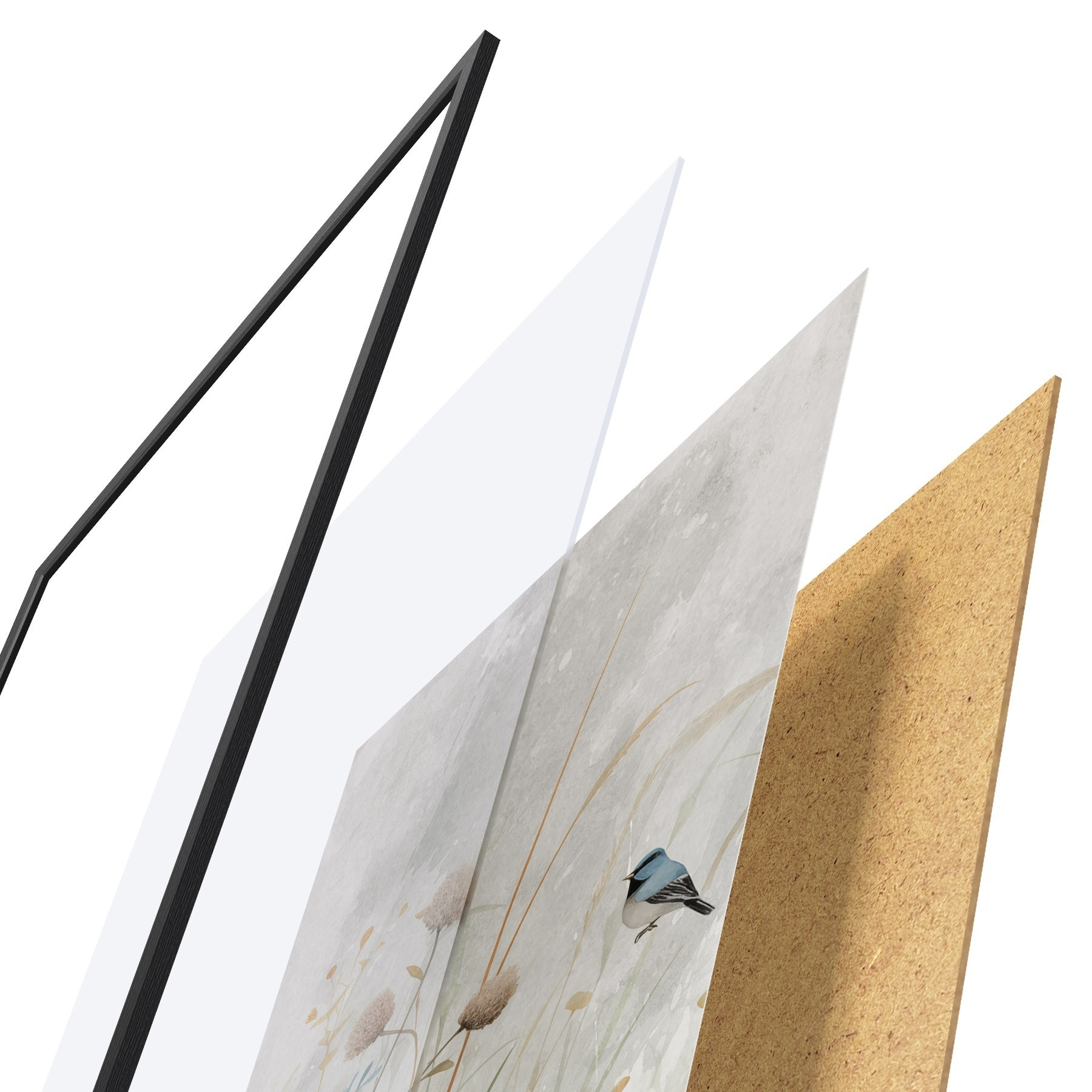 Plakát se skládá z rámu, plexiskla, tištěného obrazu a dřevotřískového podkladu. Díky úchytům na zadní straně lze plakát ihned zavěsit na zeď.