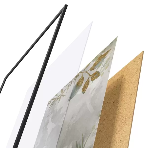 Plakát se skládá z rámu, plexiskla, tištěného obrazu a dřevotřískového podkladu. Díky úchytům na zadní straně lze plakát ihned zavěsit na zeď.