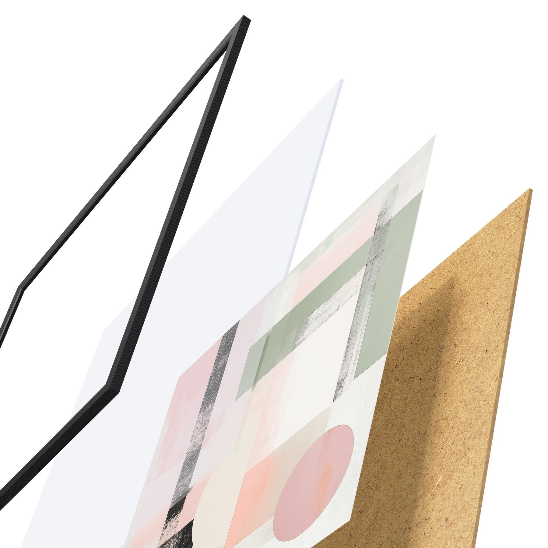 Plakát se skládá z rámu, plexiskla, tištěného obrazu a dřevotřískového podkladu. Díky úchytům na zadní straně lze plakát ihned zavěsit na zeď.