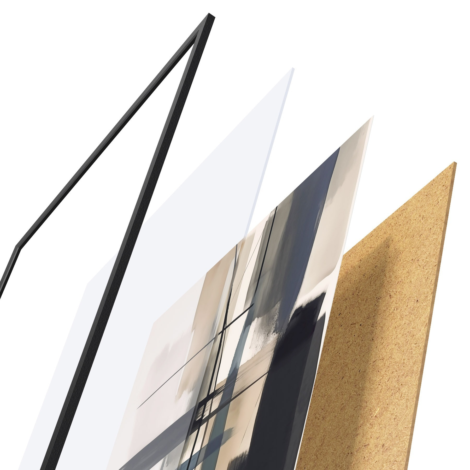 Plakát se skládá z rámu, plexiskla, tištěného obrazu a dřevotřískového podkladu. Díky úchytům na zadní straně lze plakát ihned zavěsit na zeď.