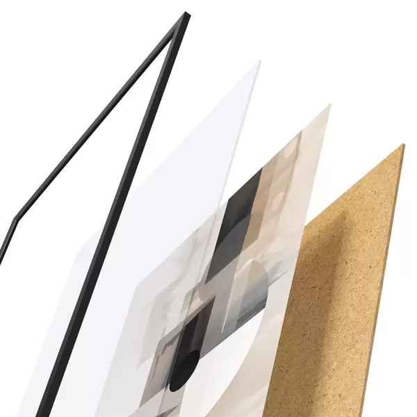 Plakát se skládá z rámu, plexiskla, tištěného obrazu a dřevotřískového podkladu. Díky úchytům na zadní straně lze plakát ihned zavěsit na zeď.