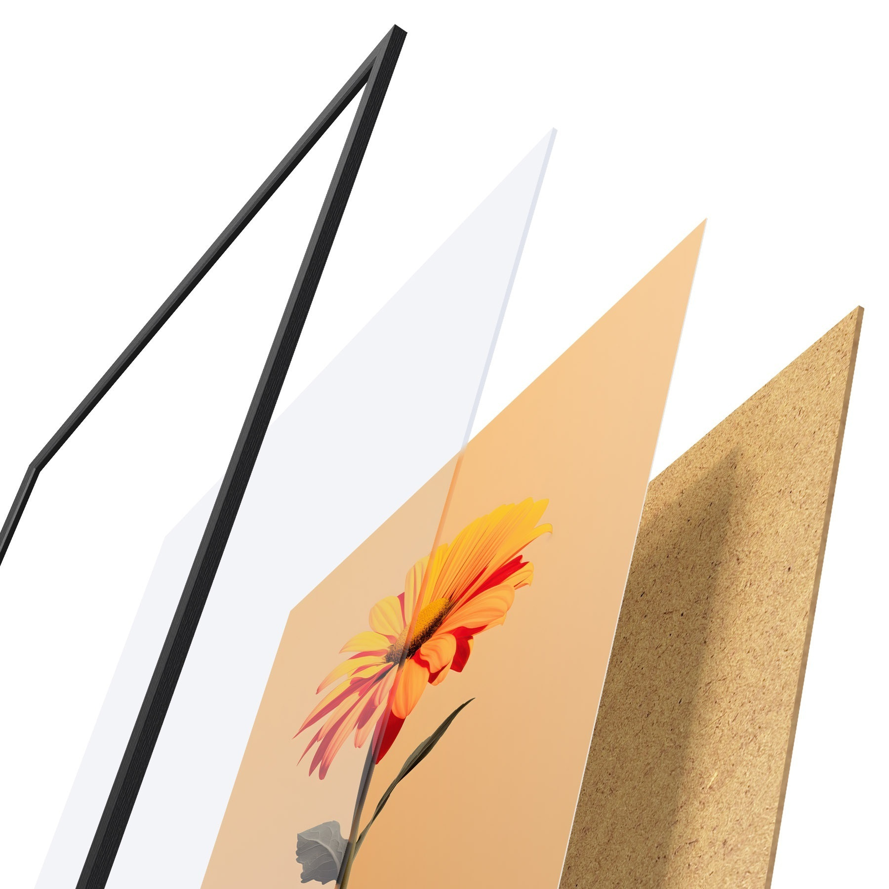 Plakát se skládá z rámu, plexiskla, tištěného obrazu a dřevotřískového podkladu. Díky úchytům na zadní straně lze plakát ihned zavěsit na zeď.