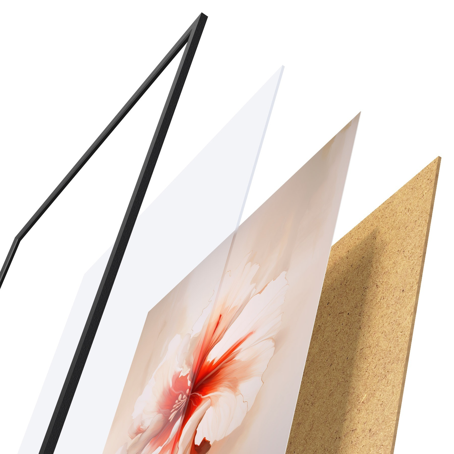 Plakát se skládá z rámu, plexiskla, tištěného obrazu a dřevotřískového podkladu. Díky úchytům na zadní straně lze plakát ihned zavěsit na zeď.