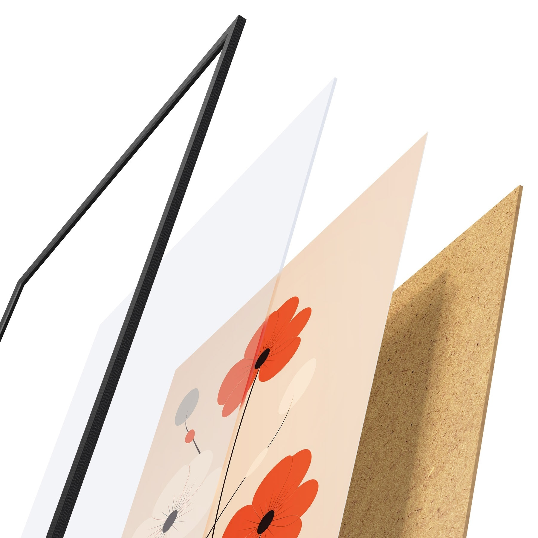 Plakát se skládá z rámu, plexiskla, tištěného obrazu a dřevotřískového podkladu. Díky úchytům na zadní straně lze plakát ihned zavěsit na zeď.