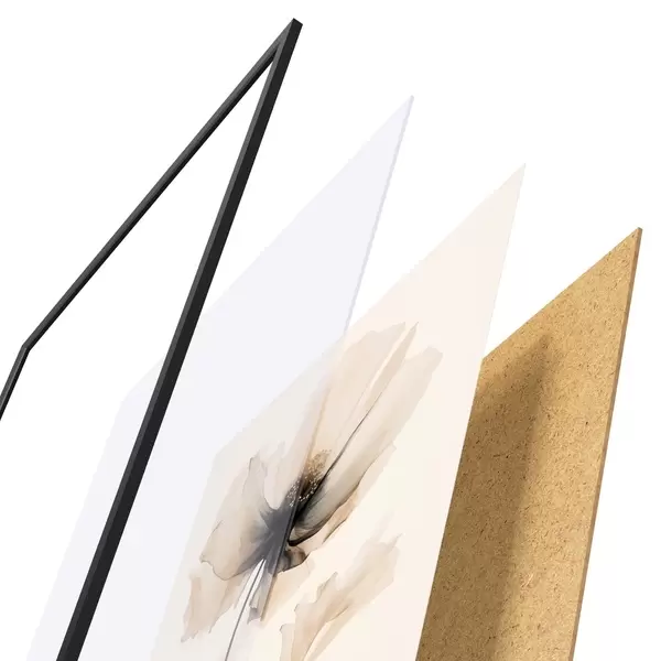 Plakát se skládá z rámu, plexiskla, tištěného obrazu a dřevotřískového podkladu. Díky úchytům na zadní straně lze plakát ihned zavěsit na zeď.