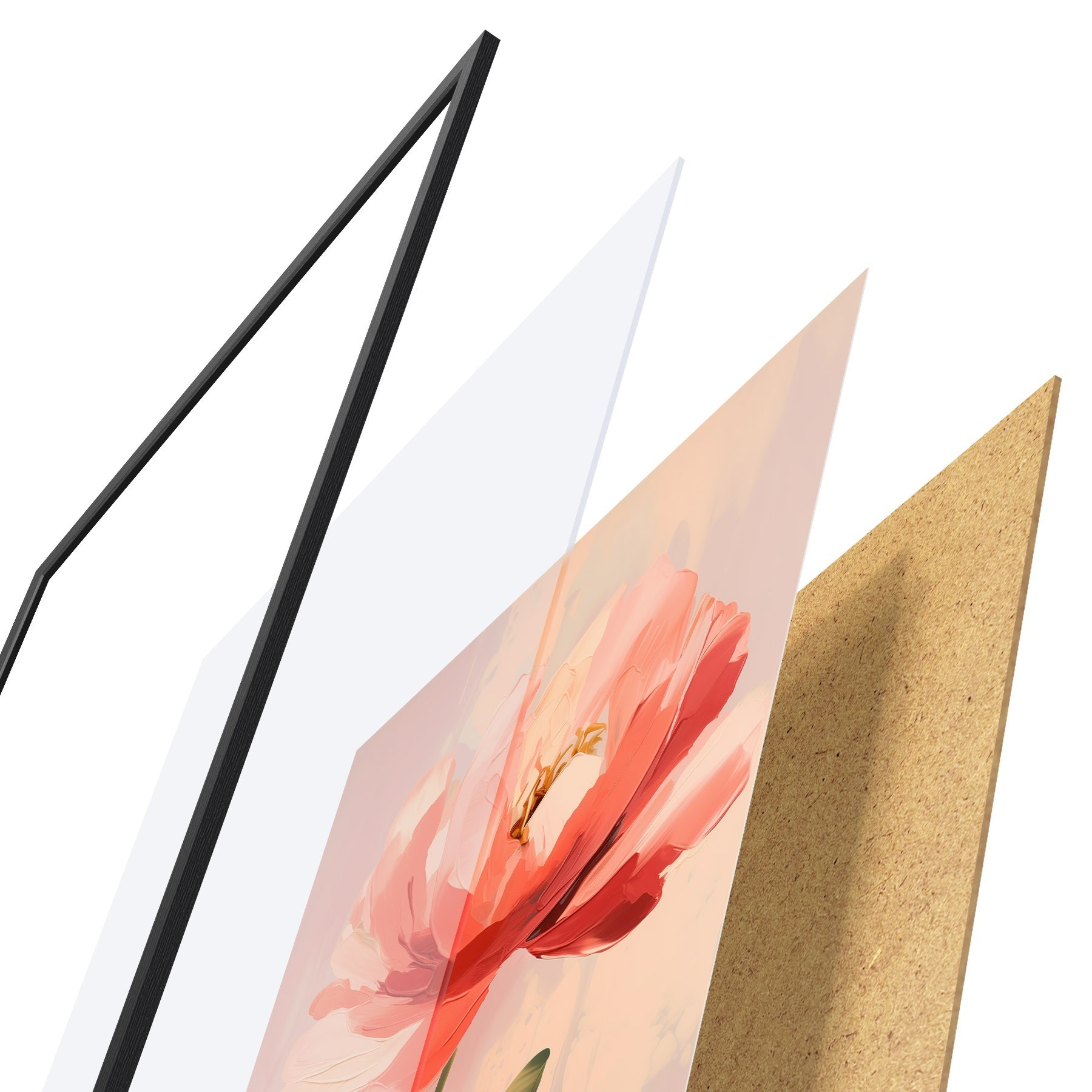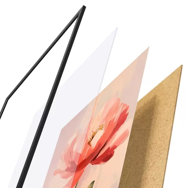 Plakát se skládá z rámu, plexiskla, tištěného obrazu a dřevotřískového podkladu. Díky úchytům na zadní straně lze plakát ihned zavěsit na zeď.