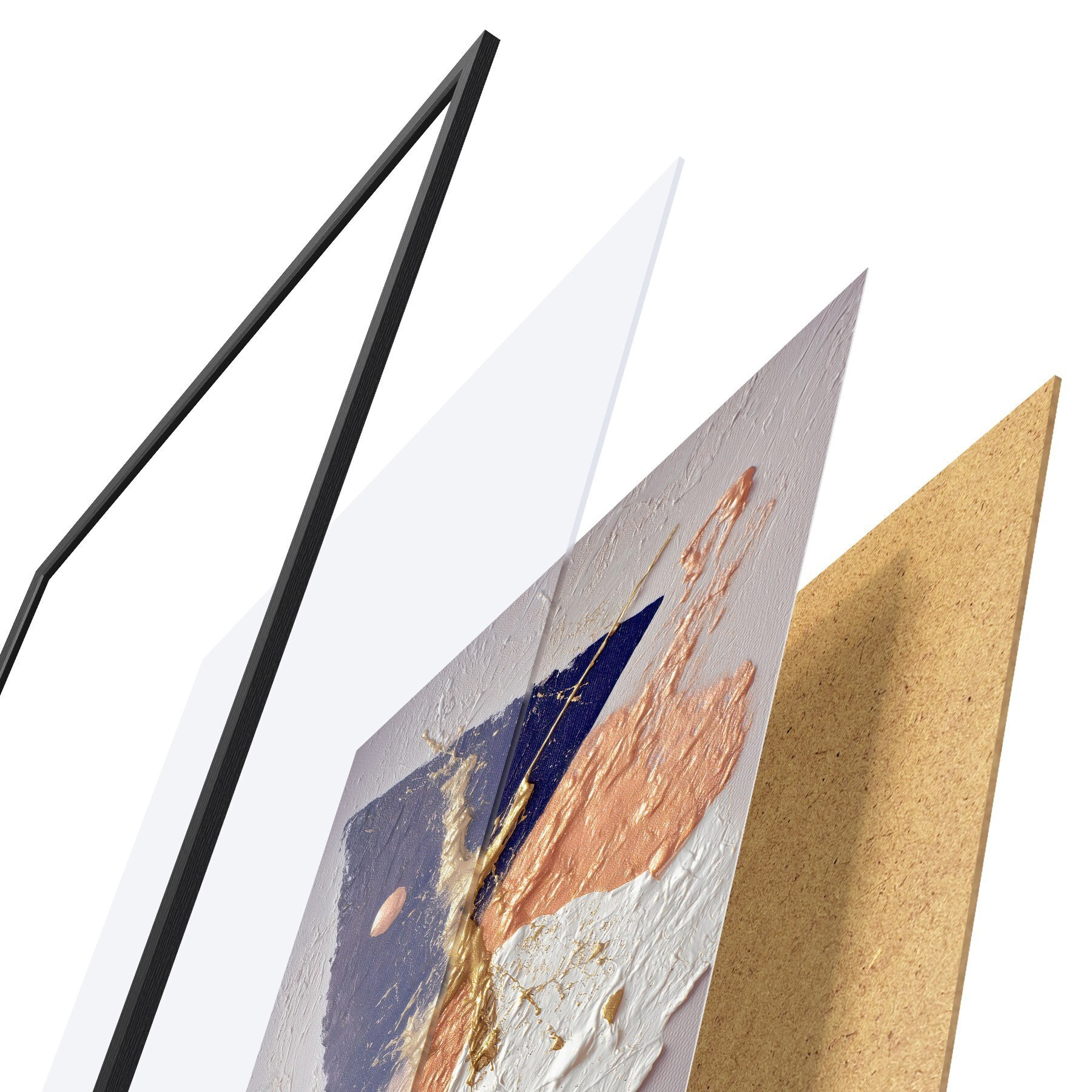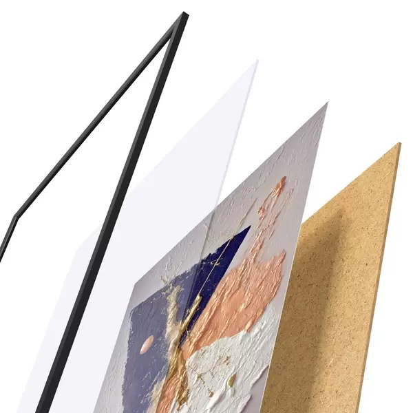Plakát se skládá z rámu, plexiskla, tištěného obrazu a dřevotřískového podkladu. Díky úchytům na zadní straně lze plakát ihned zavěsit na zeď.