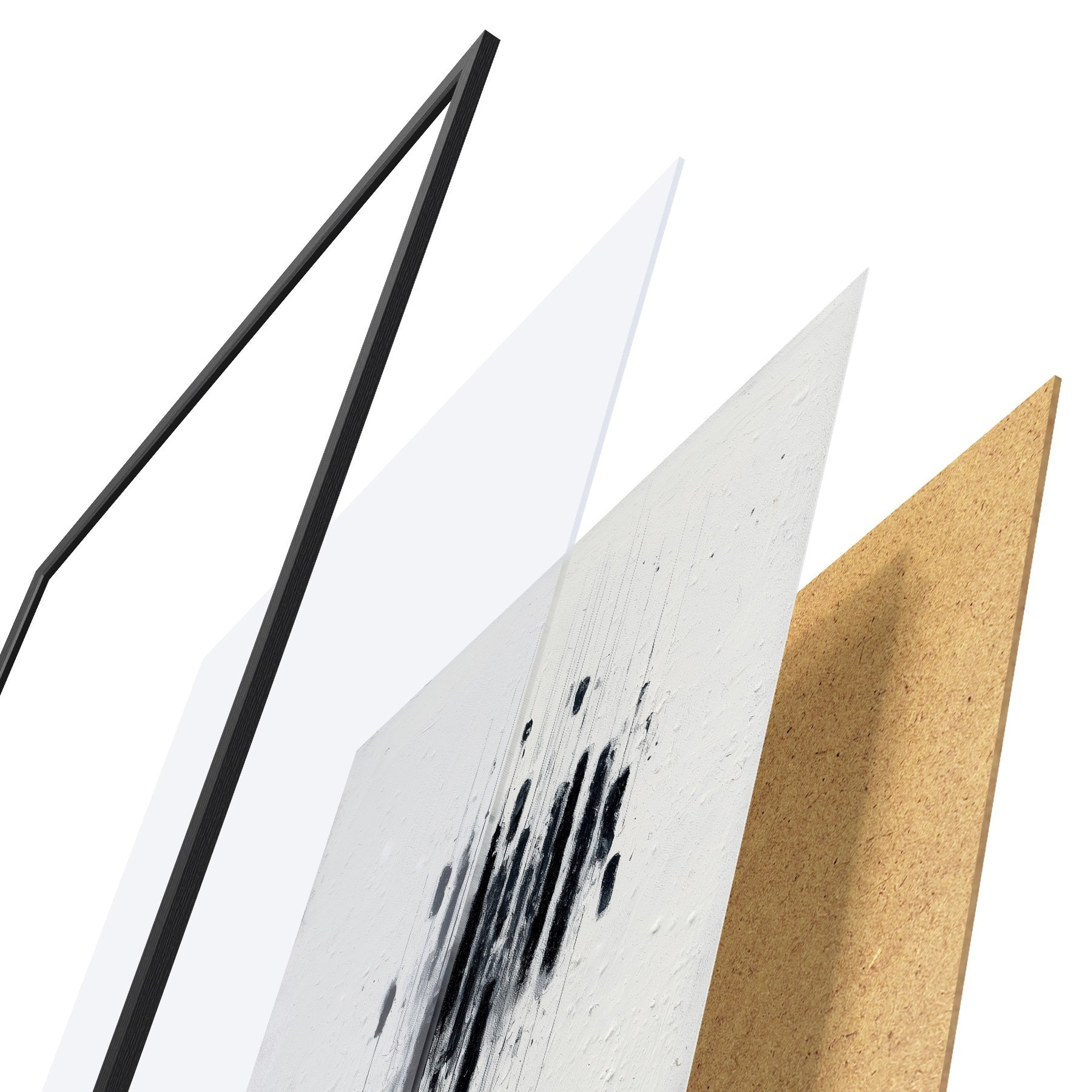Plakát se skládá z rámu, plexiskla, tištěného obrazu a dřevotřískového podkladu. Díky úchytům na zadní straně lze plakát ihned zavěsit na zeď.
